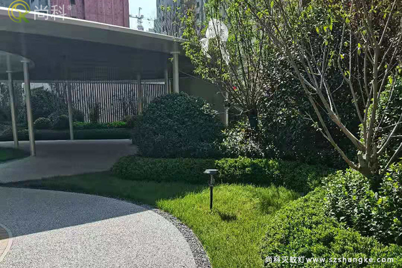 尚科太陽能滅蚊燈安裝在綠化帶沒問題,不過這里有樹木遮擋了頂部太陽能板,會影響滅蚊燈充電。