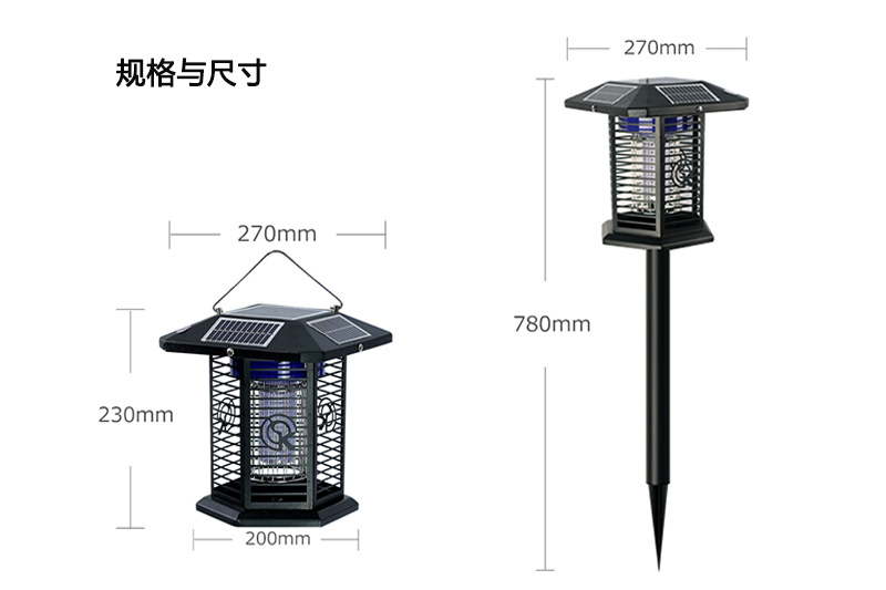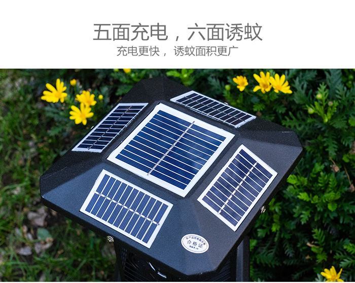 3、五面太陽(yáng)能板,充電更快。六面誘蚊電網(wǎng),面積更廣。