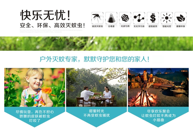 3、戶外滅蚊器安全性高,防水放曬防漏電,亞克力防護(hù)罩,放心使用。